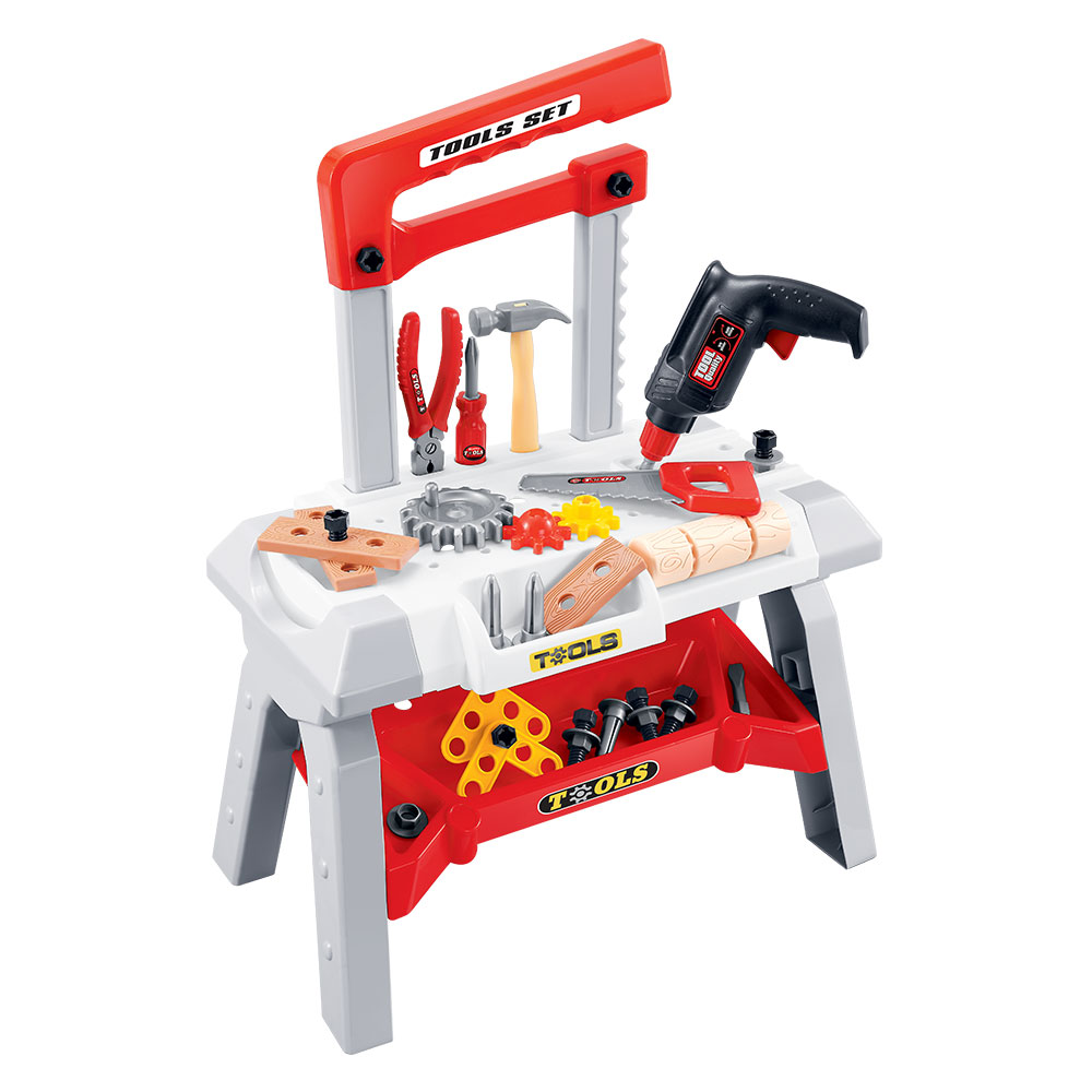 Os mais pequenos já podem acompanhar os pais na bricolage, pois com a bancada de ferramentas podem aprender mais sobre este mundo. Este produto destaca-se no mercado, através do seu realismo, já que permite que a criança brinque às ferramentas, mas sem hipótese de se magoar, porque tudo é em plástico sem arestas.